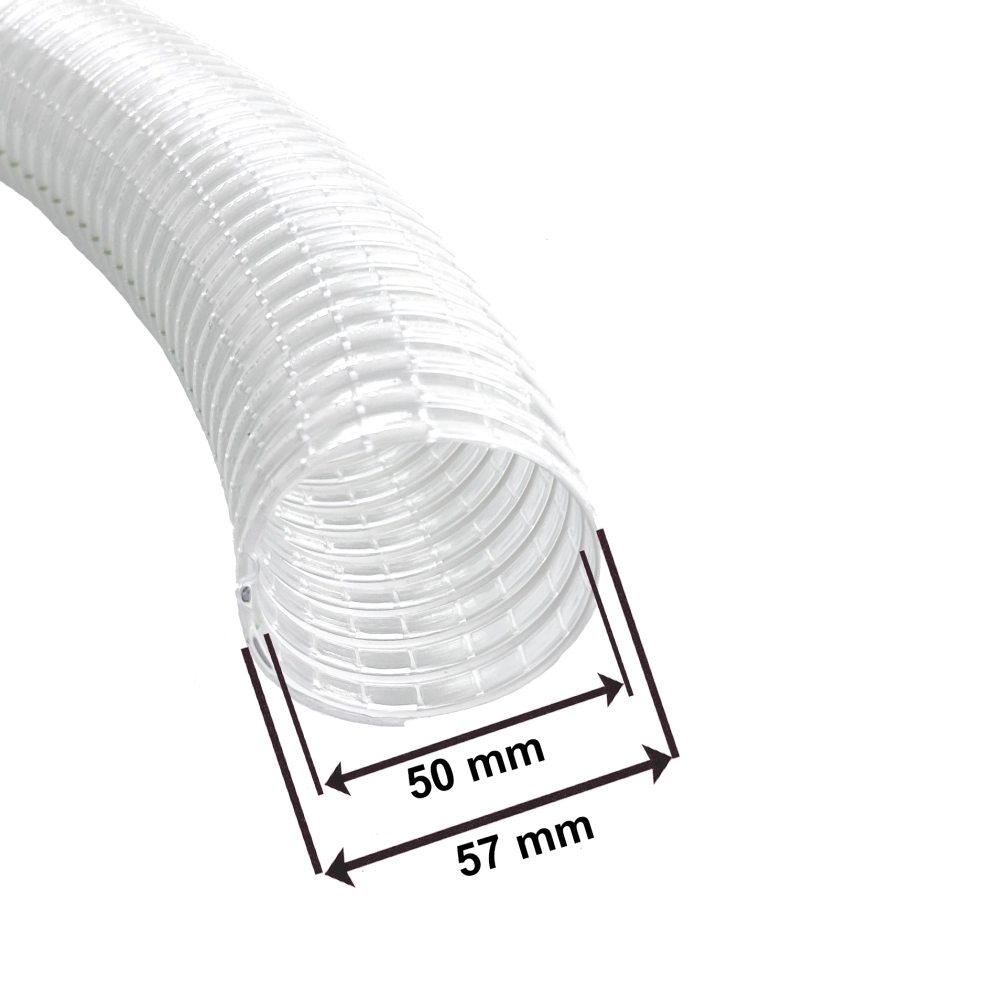 50 mm transparenter Gewebeschlauch mit Stahlfederkern & 58 mm Staubsaugeranschluss - METERWARE