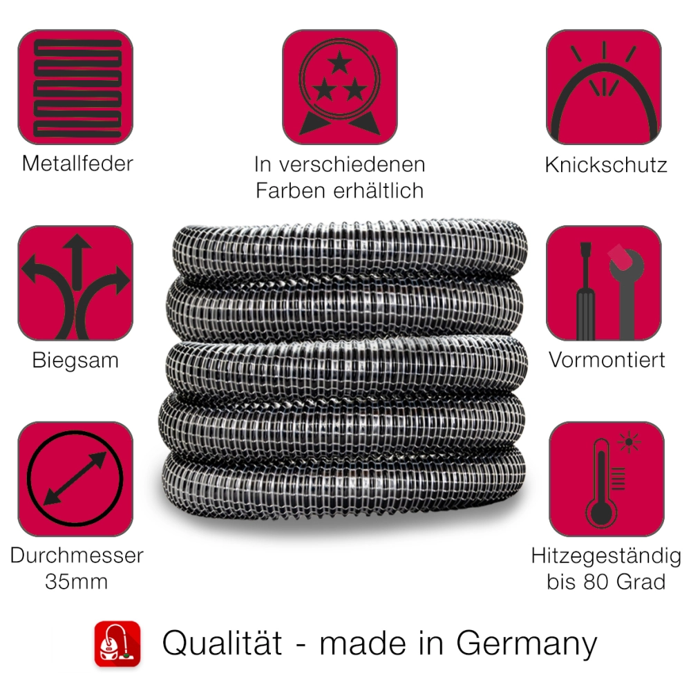 Gewebeschlauch für ALLE Einhell TC-VC Industriesauger kompatibel (AUSNAHMEN: TC-VC 1812 S, TC-VC 1815 S)