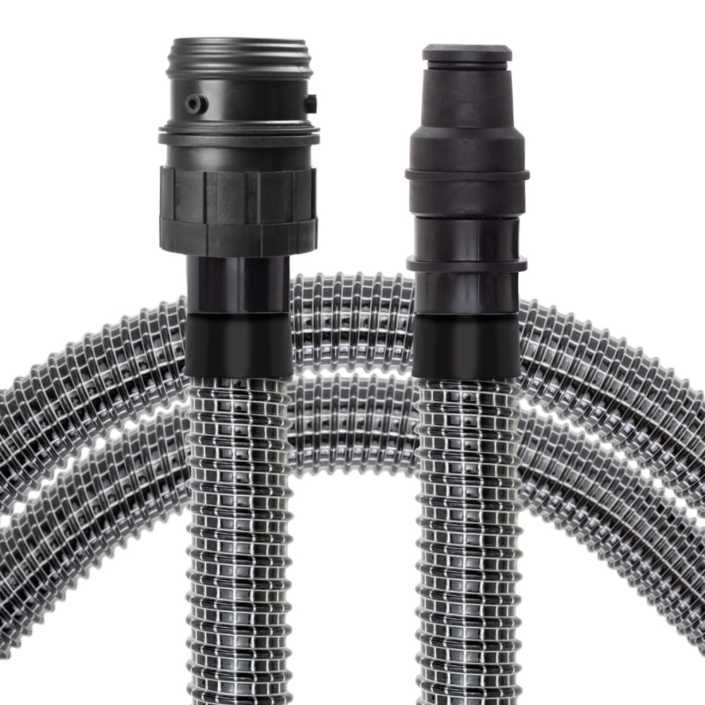 Dank seiner robusten Konstruktion und der innenliegenden Stahlfeder bietet dieser Gewebeschlauch eine ausgezeichnete Stabilität und verhindert ein Zusammenfallen, selbst unter starkem Unterdruck. Der Maschinenanschluss sorgt für eine sichere Verbindung und minimiert das Risiko von Leckagen oder Ausfällen während des Betriebs.