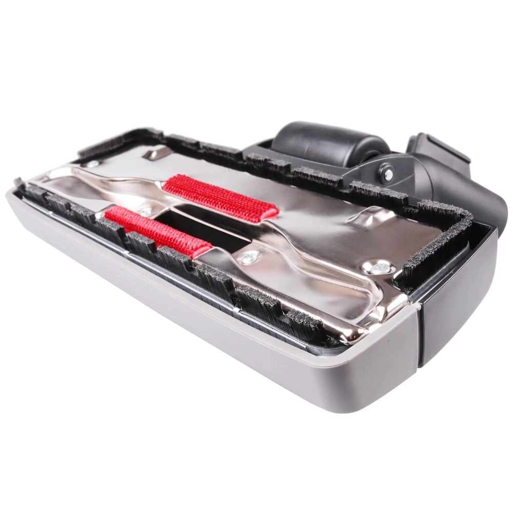 Bodendüse: Umschaltbar für Teppich und Hartböden. Große Saugöffnung in der hochwertigen Chromplatte auf der Unterseite. Eine große stabile Rolle für leichgängiges Saugen. Extra Kantenschutz vorne um Ihre Möbel und Scheuerleisten zu schützen.