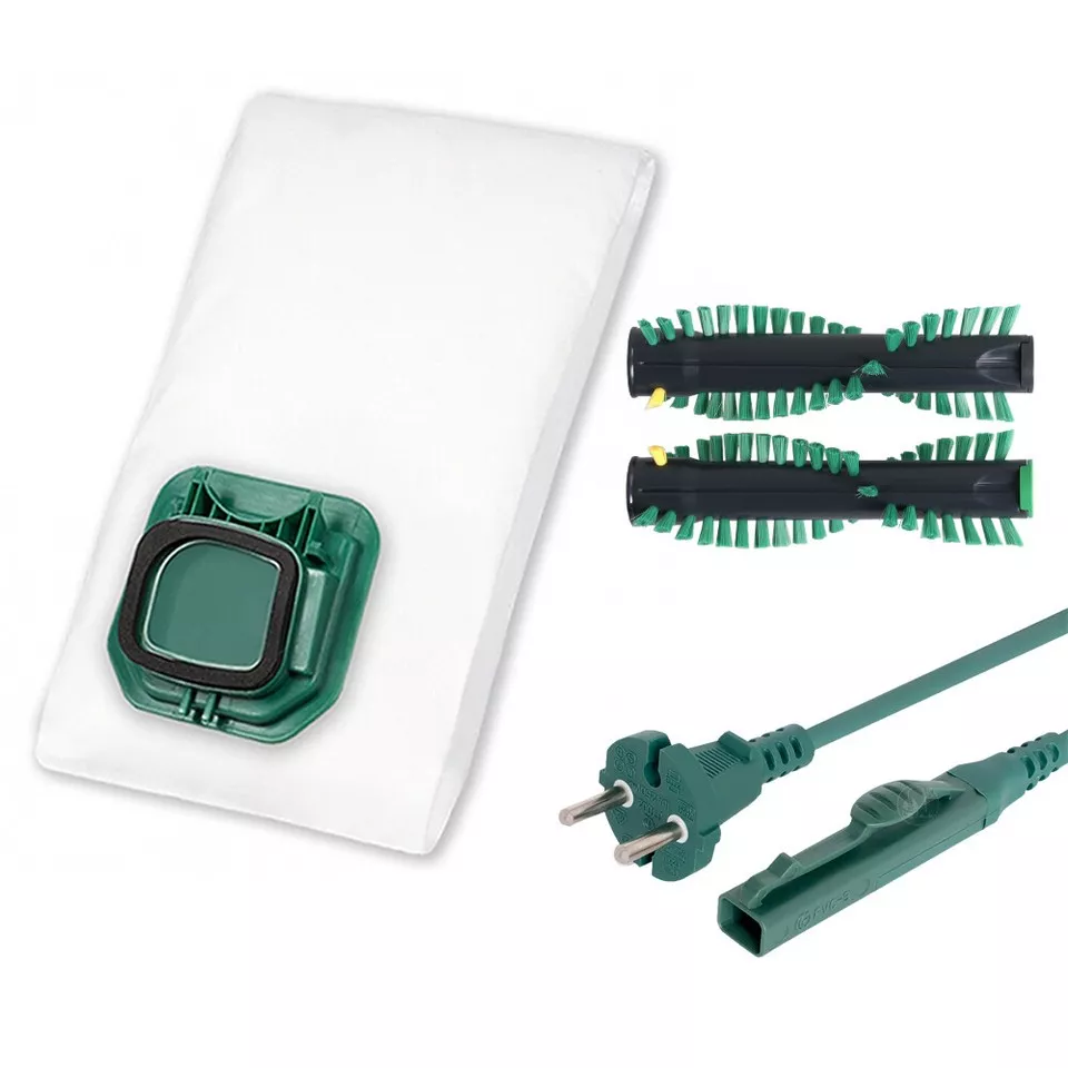 12 Staubsaugerbeutel, 10 Meter Kabel und 1 Bürstenpaar passend und geeignet für Vorwerk Kobold 140 und Kobold 150 mit EB 360 und 370