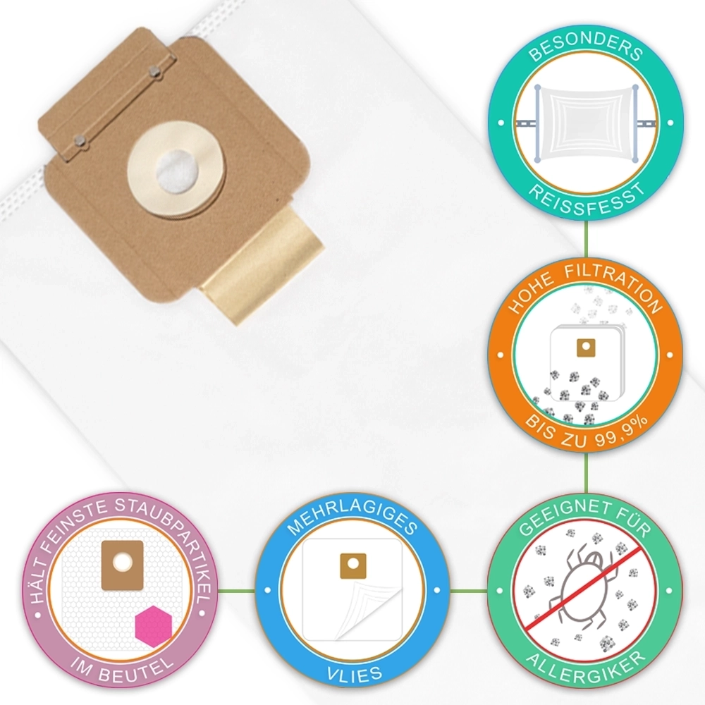Unsere Staubsaugerbeutel sind sicher in der Anwendung und es bestehen keine bekannten Risiken bei sachgemäßer Nutzung.