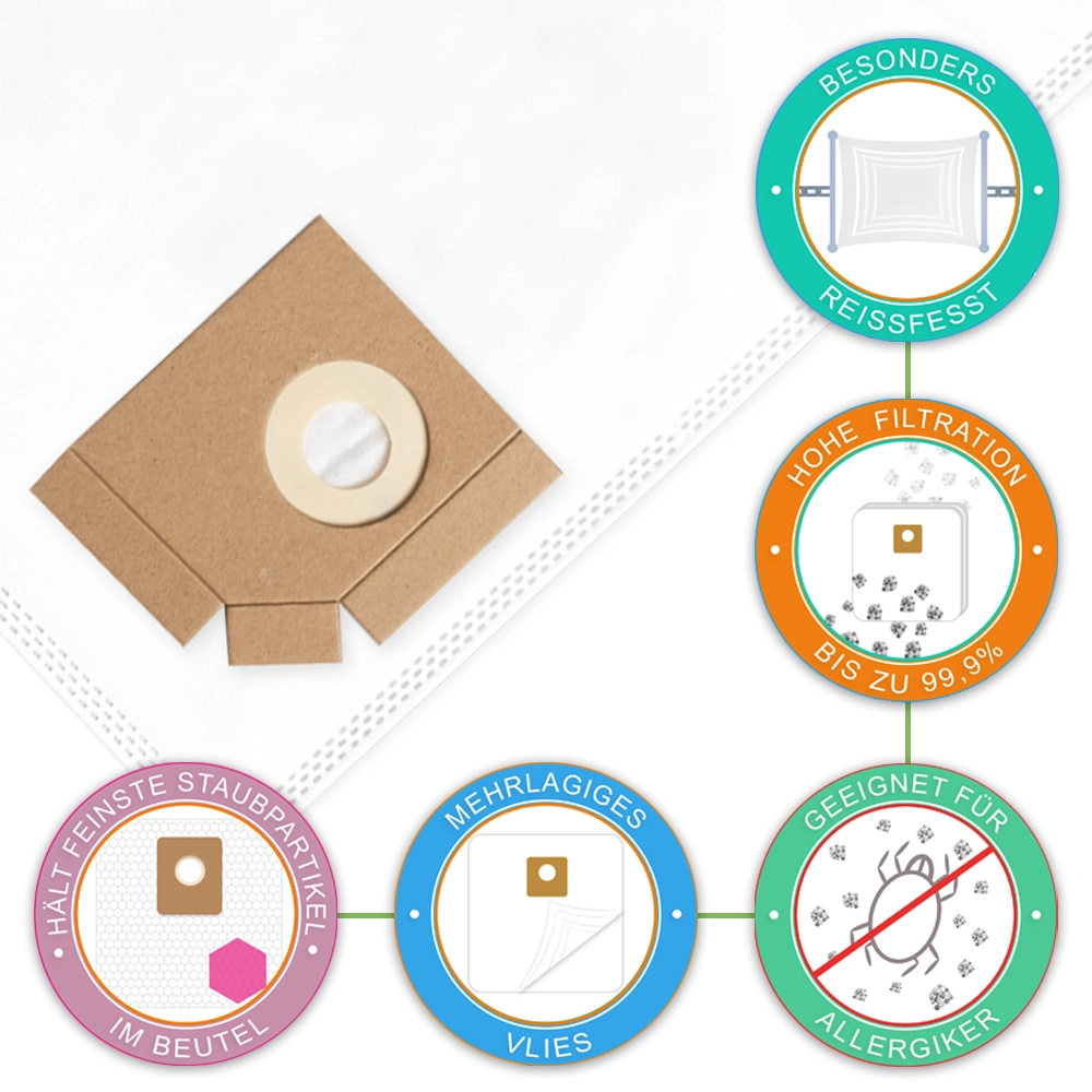 Unsere Staubsaugerbeutel sind sicher in der Anwendung und es bestehen keine bekannten Risiken bei sachgemäßer Nutzung.
