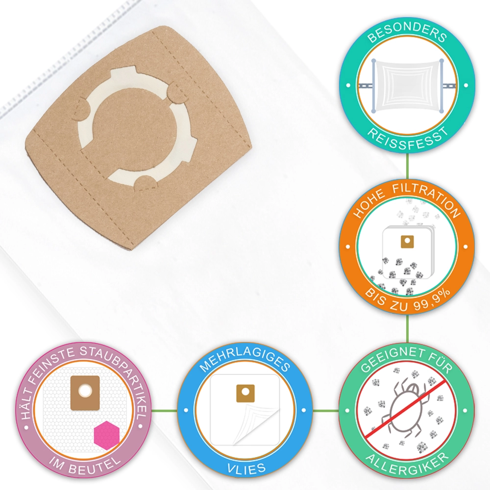 Unsere Staubsaugerbeutel sind sicher in der Anwendung und es bestehen keine bekannten Risiken bei sachgemäßer Nutzung.