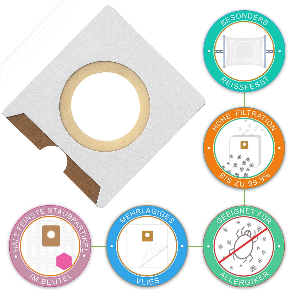 Beachten Sie dass diese Staubsaugerbeutel nur in die oben angegebenen Staubsauger passen und befolgen Sie die Anweisungen in der Betriebsanleitung Ihres Staubsaugers.