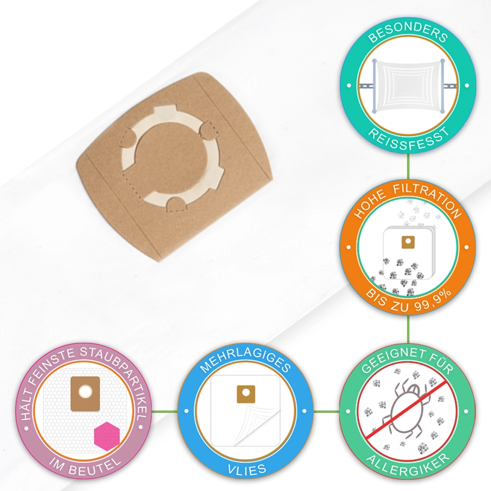 Unsere Staubsaugerbeutel sind sicher in der Anwendung und es bestehen keine bekannten Risiken bei sachgemäßer Nutzung.
