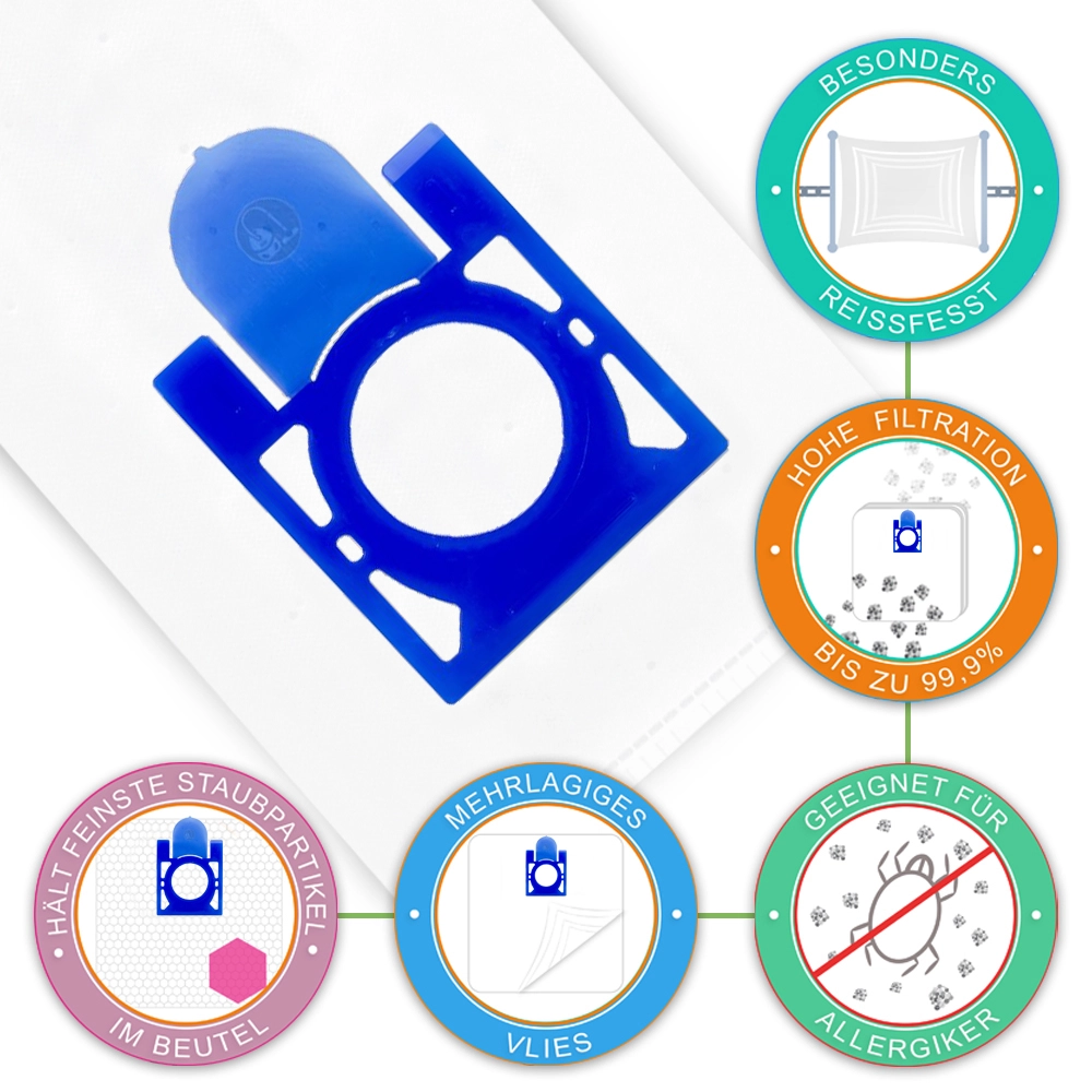 Jede Packung enthält 10 Staubsaugerbeutel & 1 Vliesfilter.